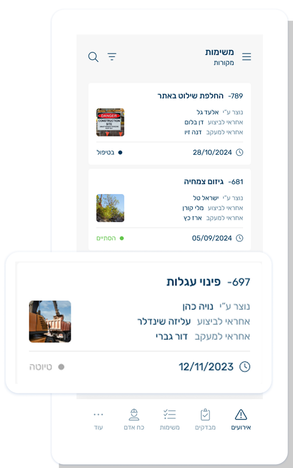 מכל דיווח ניתן לייצר משימה הניתנת לעדכון ומעקב ביצוע כולל מנגנון התראות ותזכורות