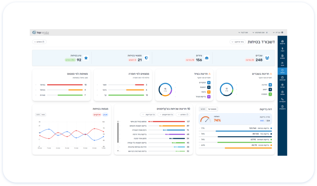 ציוד, עובדים, נהלים, דיווחים, דוחות, מבדקים ועוד.
